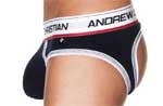 |  | |  | |  | Andrew Christian Air Jock Can't make up your mind between brief and a jockstrap? Why should you have to. The cool and sexy new air jock is both. From the front it's a brief, with a male enhancing ""comfy cup"" in ...